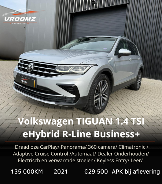 Volkswagen Tiguan, 1.4 TSI eHybrid R-Line Business+ | Draadloze CarPlay | Lane Assist | 360 camera Parkeersensoren | Automaat | Panorama/schuif kantel dak | Electrisch verstelbare stoelen | Stoel en stuur verwarming | Key Less entry | IQ lights |